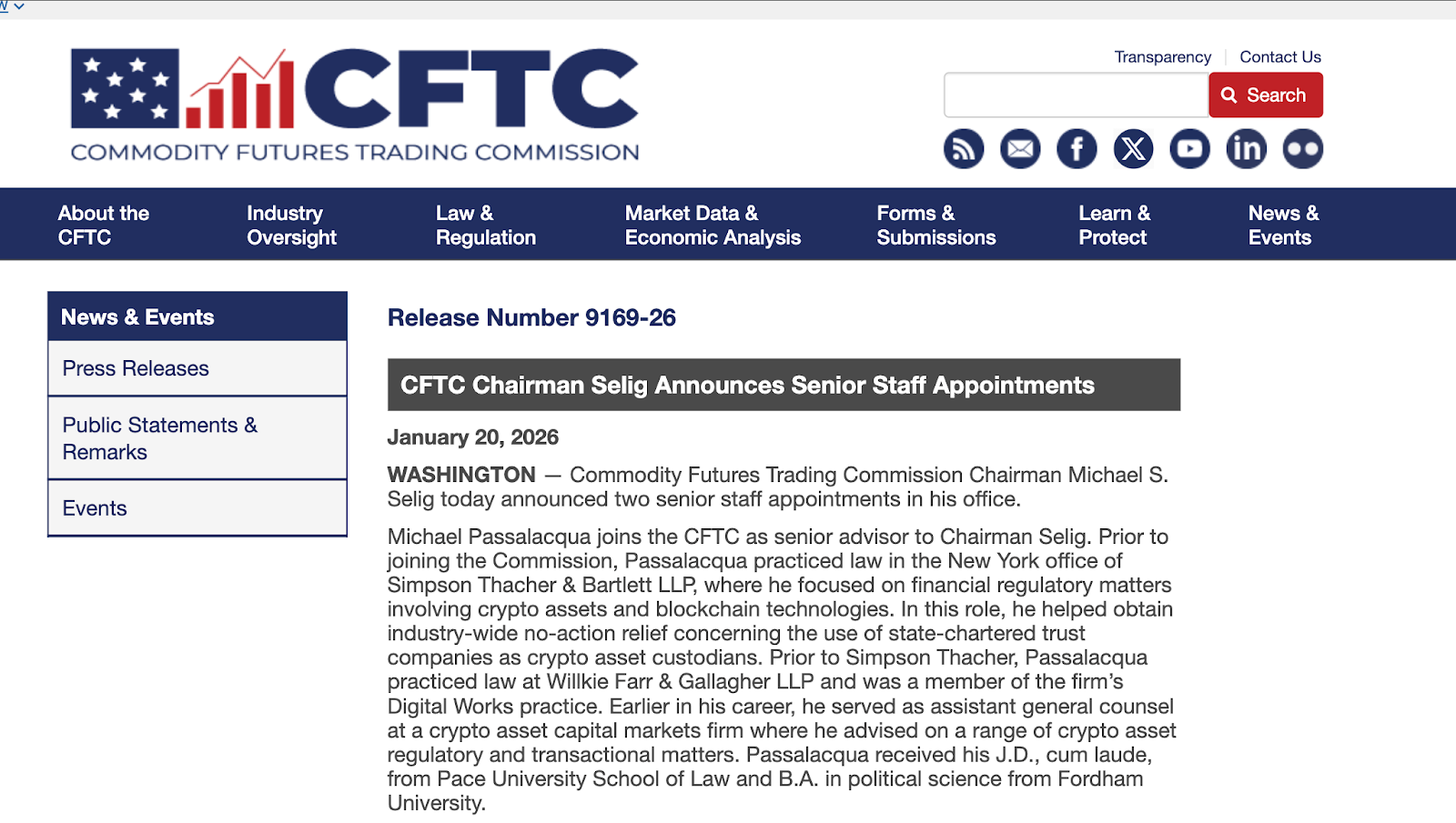 The appointment of Michael Passalacqua is a great development for the commission. Passalacqua, a former associate at the elite law firm Simpson Thacher & Bartlett, brings deep experience in litigating crypto and blockchain cases. In a notice, Selig highlighted Passalacqua’s experience with financial regulatory matters involving crypto assets.