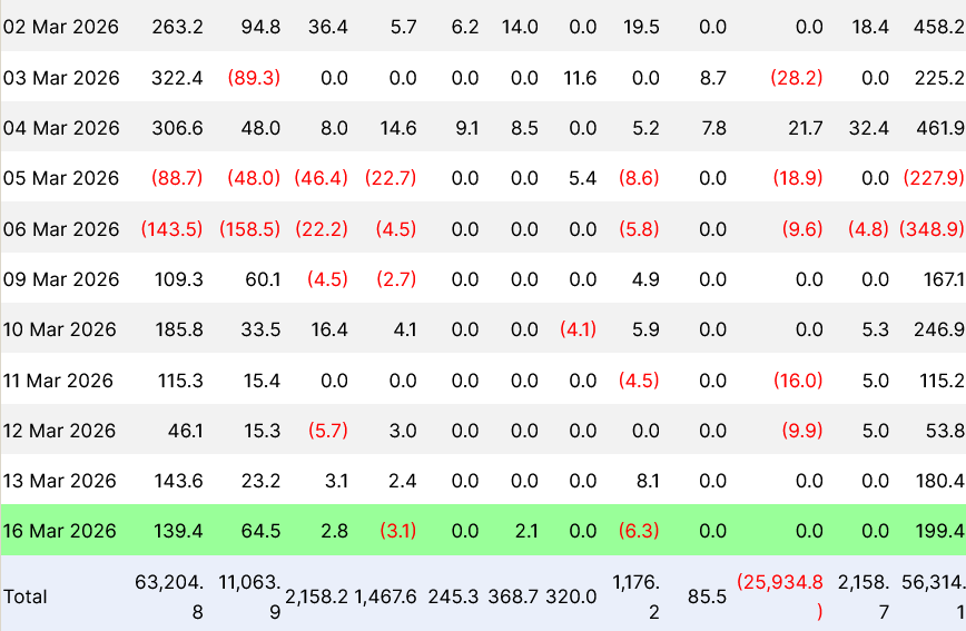 - U.S. spot Bitcoin ETFs have seen continuous inflows for six days, accumulating $962.8 million starting March 9
