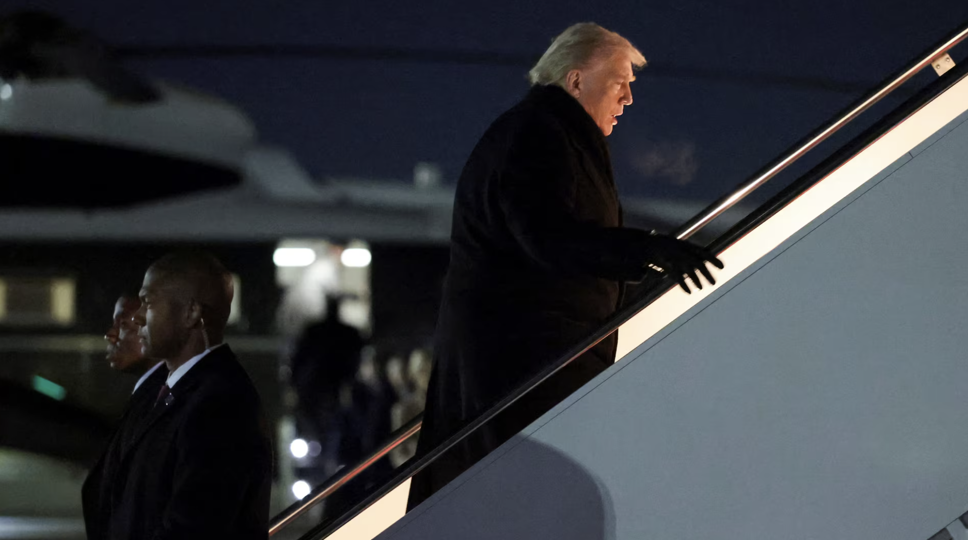President Trump boards Air Force One on his way to the World Economic Forum in Davos (© Reuters).