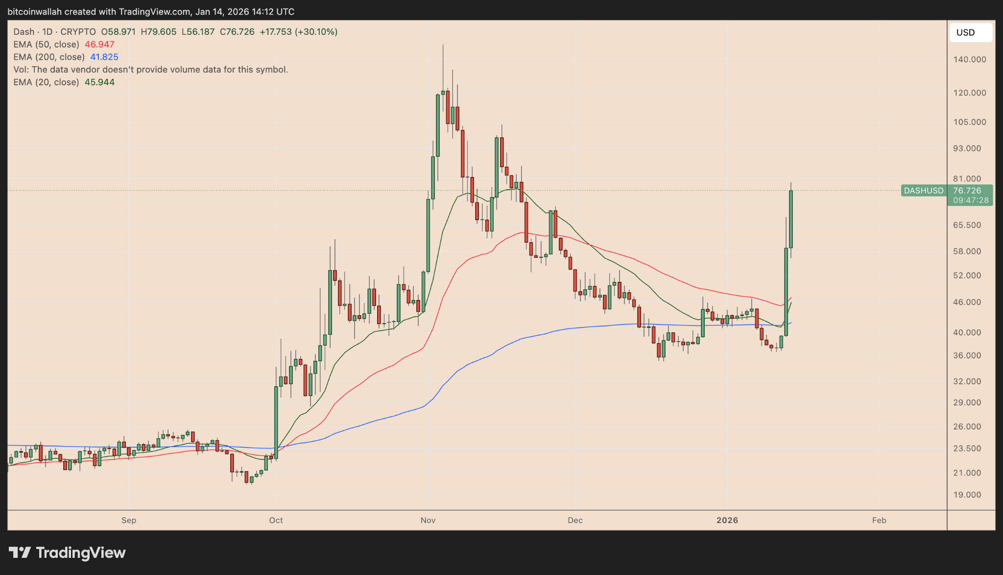 Many believe this rally resulted from capital rotating out of ZCash following an internal crisis at Electric Coin and into DASH.