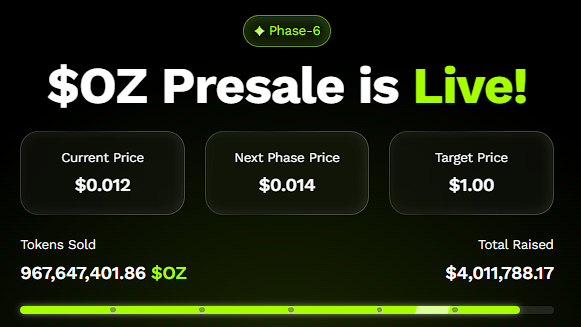 Ozak AI is currently in its 6th OZ presale stage at $0.0012, with over $4 million raised and more than 960 million tokens sold, signaling rapidly growing demand. Unlike meme tokens that rely on hype alone, Ozak AI combines narrative strength with real-world technology, giving it both speculative momentum and tangible utility.