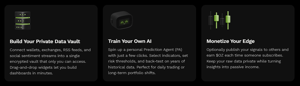 Ozak AI is a blockchain-based crypto project that provides a technology platform that specializes in predictive AI and advanced data analytics for financial markets. Through machine learning algorithms and decentralized network technologies, Ozak AI enables real-time, accurate, and actionable insights to help crypto enthusiasts and businesses make the correct decisions.