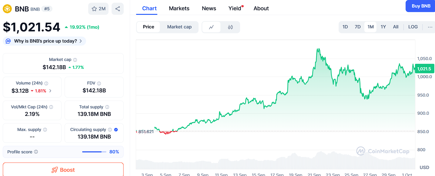 Binance Coin (BNB), trading near $1,021, continues to prove its staying power. As the native token of the Binance exchange, BNB powers trading fee discounts, staking rewards, and decentralized applications within Binance’s ecosystem. Its utility ensures constant demand, while its deflationary model supports long-term value.