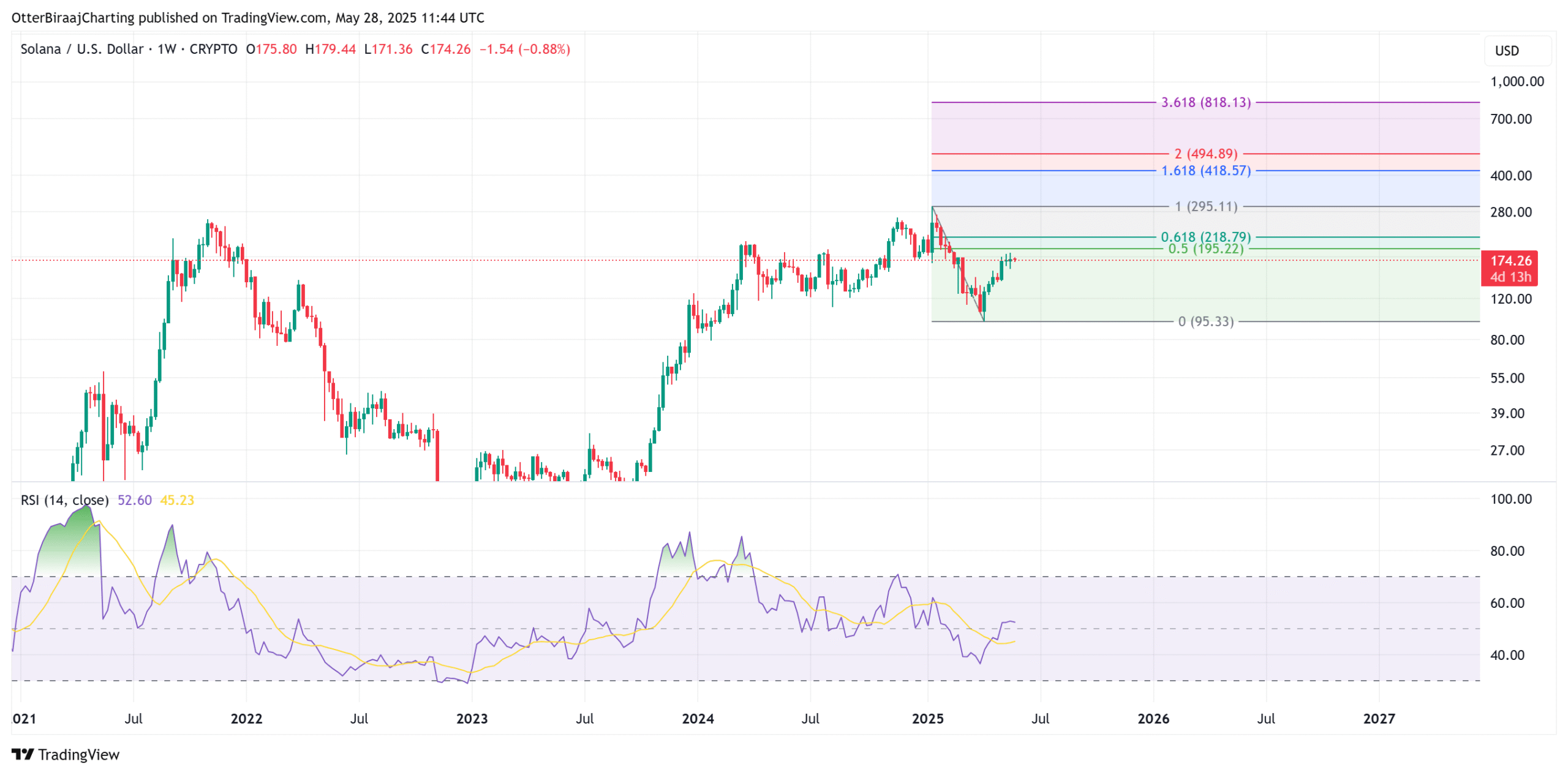 This represents approximately 70% upside from current levels. If SOL enters price discovery mode, bullish momentum could target the 1.618 extension suggesting SOL could reach $418.