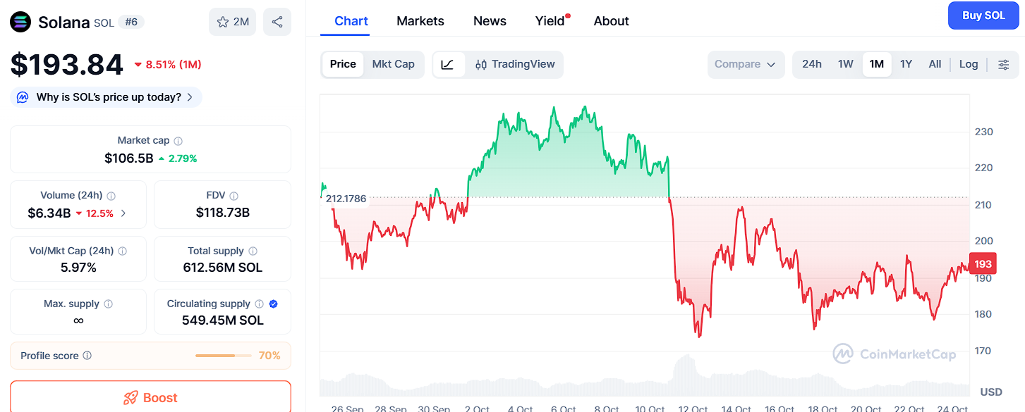Solana continues to be one of the most watched altcoins in the market as it builds momentum ahead of the next bull run. Currently trading around $193, Solana has support levels at $160, $145, and $120, and resistance levels at $210, $310, and $500. The $500 mark has emerged as a major psychological and technical target for traders, and analysts see a strong possibility of this level being tested if bullish momentum continues.
