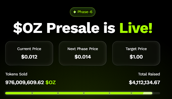 Unlike speculative meme coins or vaporware projects, Ozak AI is backed by real infrastructure and partnerships. Currently in its 6th presale stage at $0.012, the project has already raised over $4.1 million and sold more than 975 million tokens. Through strategic collaborations with Perceptron Network and SINT, Ozak AI integrates over 700,000 AI nodes to deliver predictive analytics, signal processing, and intelligent agent systems.