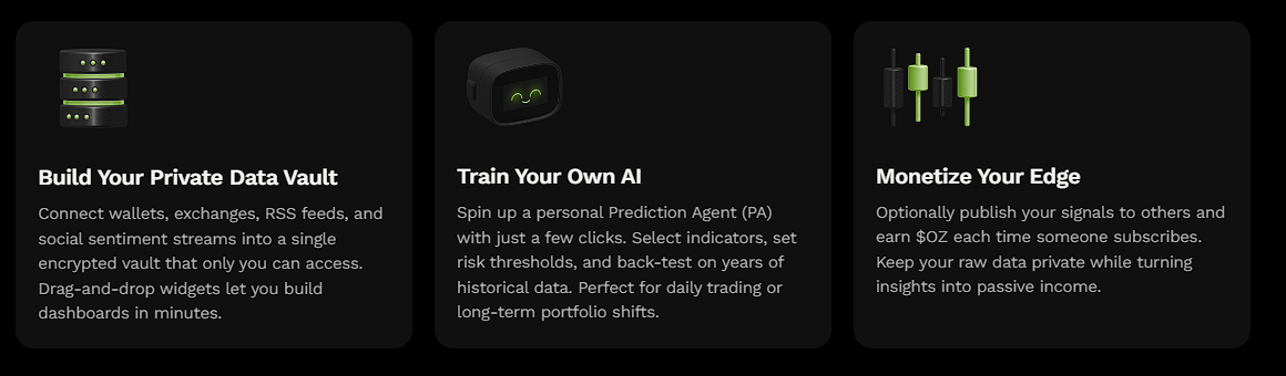 Ozak AI is a blockchain-based crypto project that provides a technology platform that specializes in predictive AI and advanced data analytics for financial markets. Through machine learning algorithms and decentralized network technologies, Ozak AI enables real-time, accurate, and actionable insights to help crypto enthusiasts and businesses make the correct decisions.