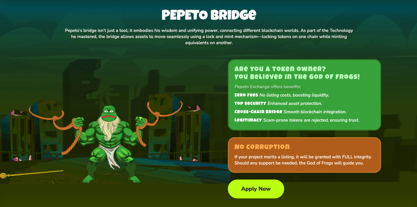 Pepeto builds PepetoSwap for zero fee trading, Pepeto Bridge enabling cross chain token movement, and Pepeto Exchange providing verified listings for meme projects. Over 850 of these projects have applied to receive an access to exchange listing and generate a pipeline of the potential volume prior to its public issue.