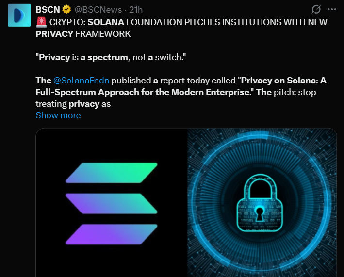 The Solana Foundation released a new report titled ‘Privacy on Solana: A Full-Spectrum Approach for the Modern Enterprise’ on Monday, March 23. This report outlined the organization’s new privacy-focused framework aimed at institutional investors.
